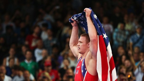 Jacob Stephen Varner wins the Gold Medal in the Men’s 96 kg Freestyle Wrestling 2012 Olympics. Another gold medal for the United States of America. Varner defeats Valerii Andriitsev of the Ukraine. August 12, 2012 marks day sixteen and the last day of the 2012 Olympics.