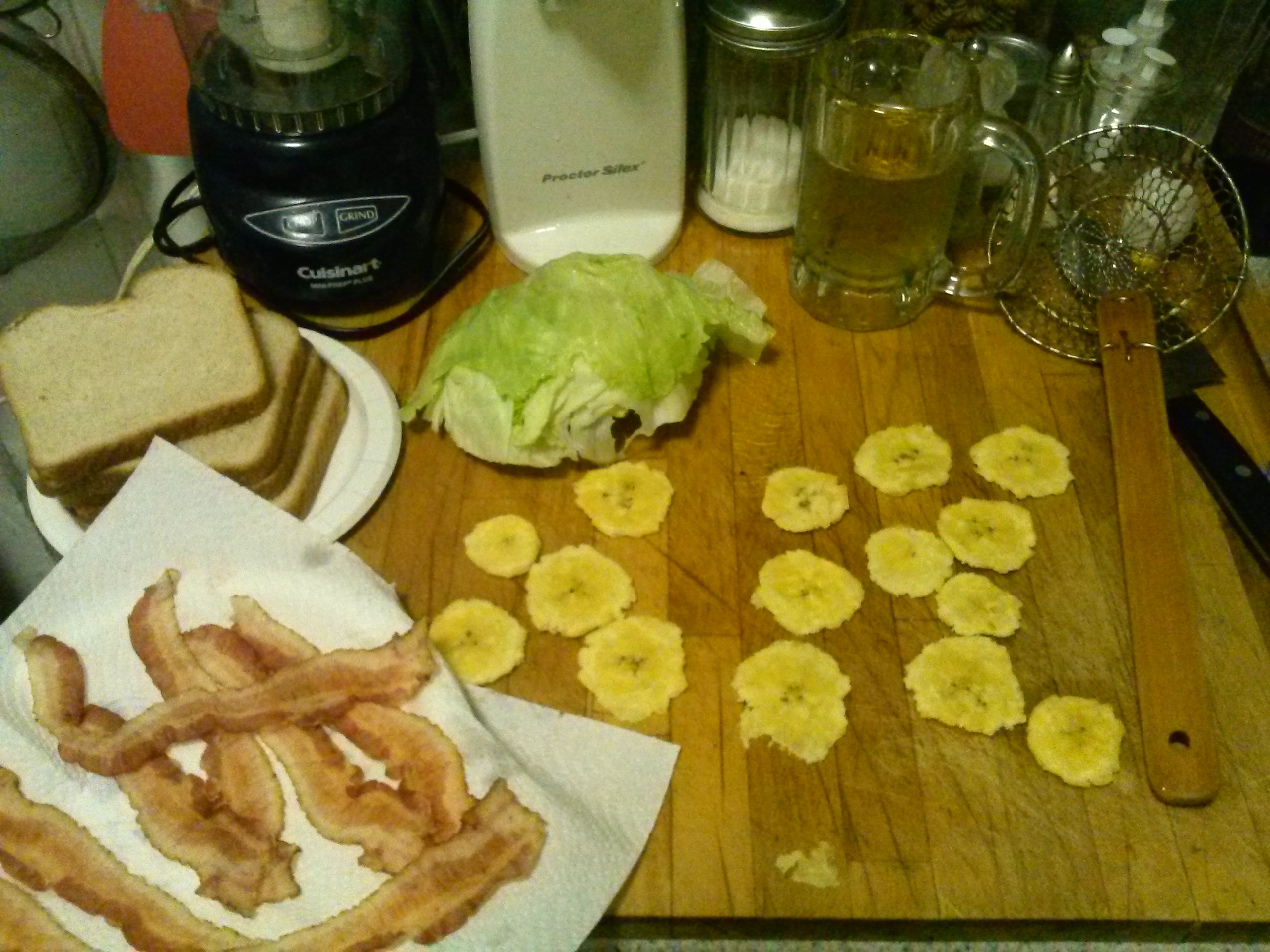 Ingredients: Bacon, lettuce, bread of choice ,flattened flash fried plantains and cherry tomatoes (my daughters love cherry tomatoes not pictured).