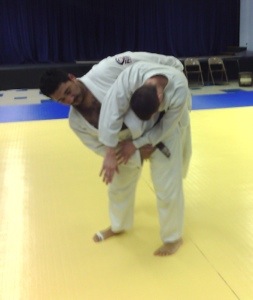Once you stop the oncoming attack, (Ippon Seoinage as demonstrated) you begin your counter.