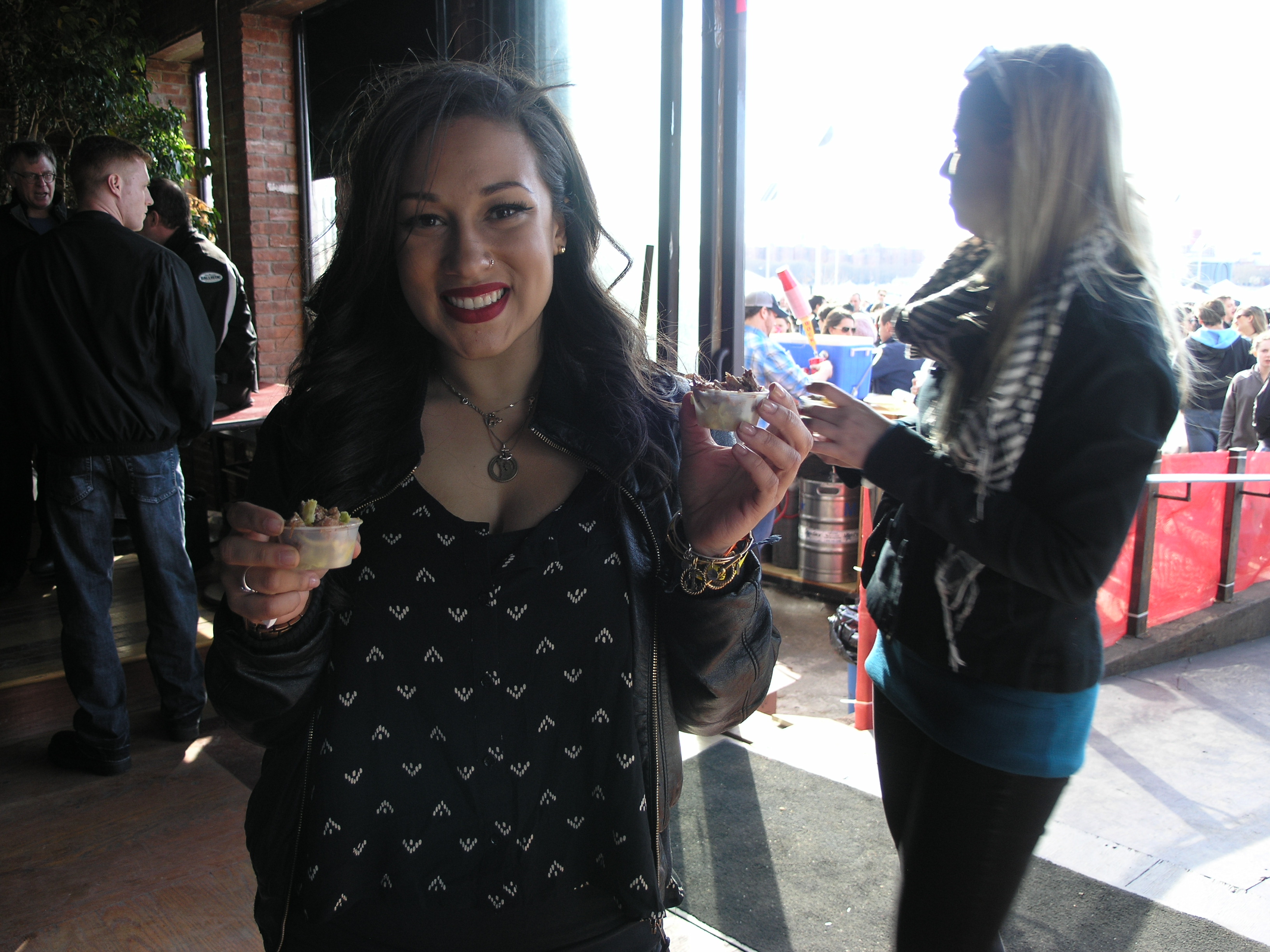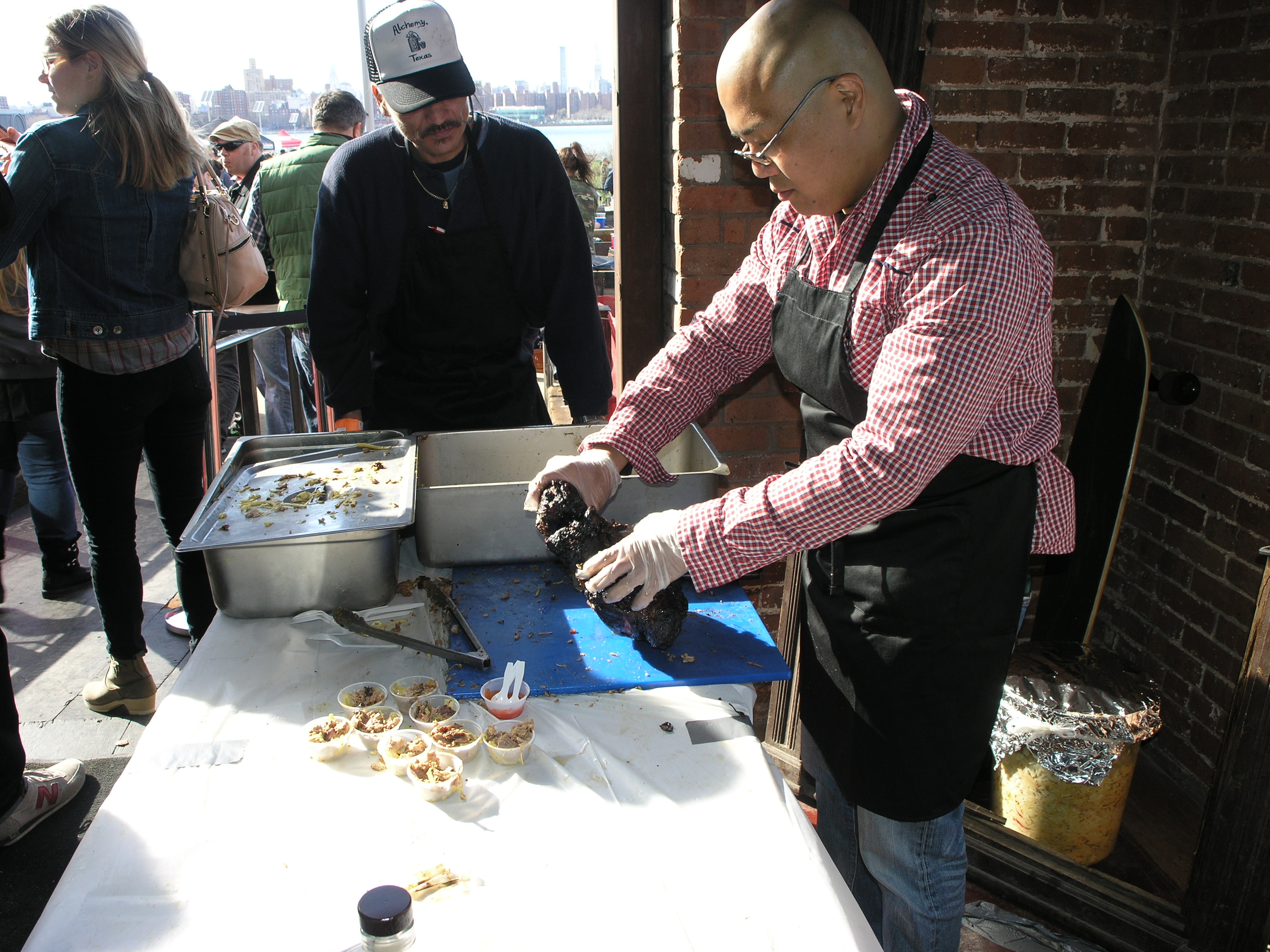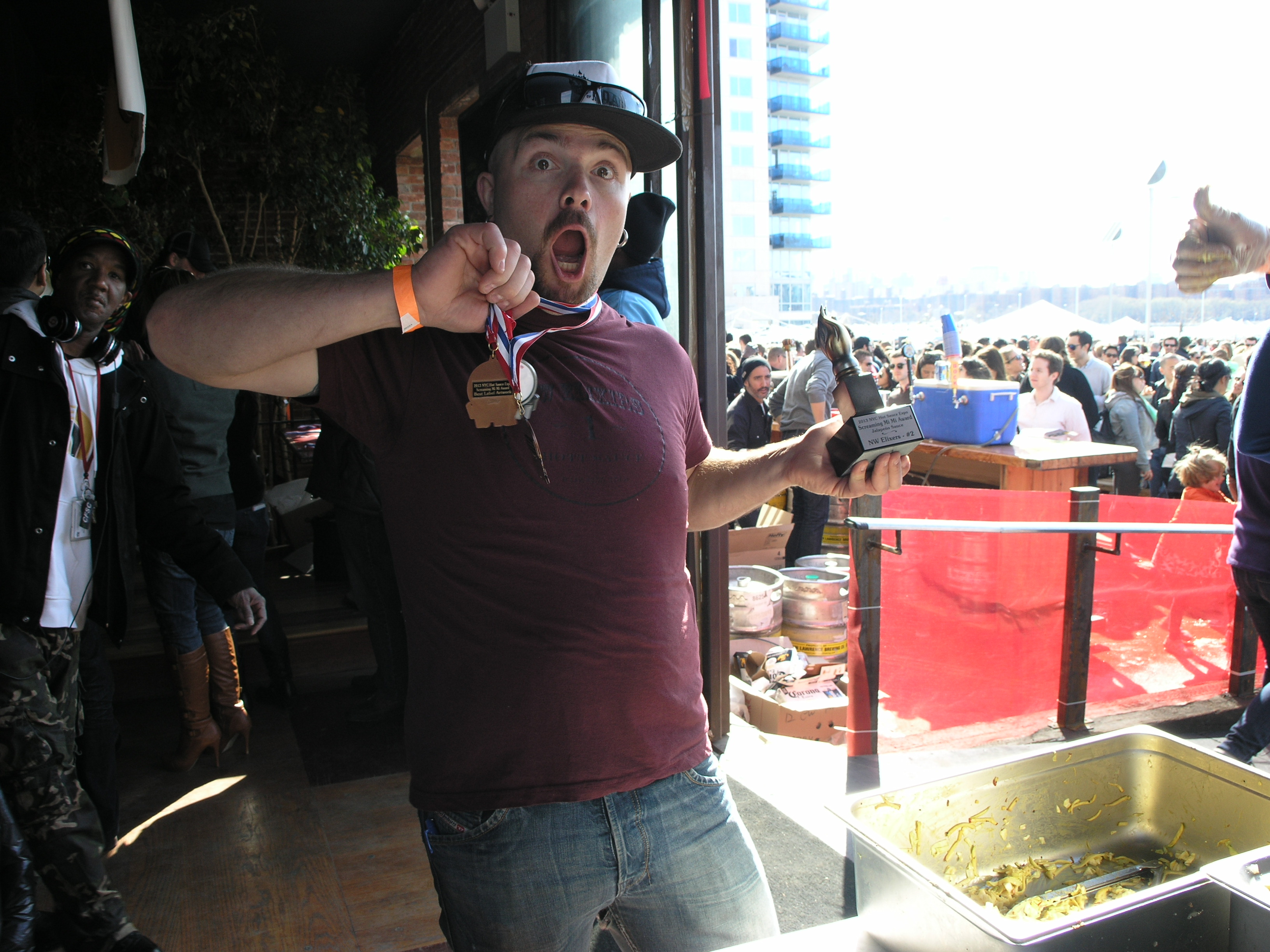 The event was held at a bar that was located right on East River State Park. It was a clear day, but windy. Check out the crowd from our vantage where the ArrogantSwine booth was located at the entrance of the V.I.P. section.