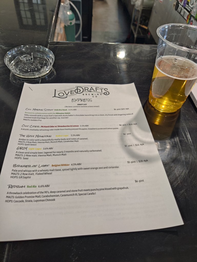 The Broad Street Market, how do I love thee, let me count the ways. Harrisburg has one of the best farmers market/food joints/local grub scenes in Pennsylvania. Specifically in this post we’re talking about LoveDraft’s Express. It’s a burger joint specializing in “smash burgers”. One word, fantastic! On this trip I had the so called “Saturday Detention” burger, which includes a beef patty, sausage patty, American cheese, bacon and topped off with an egg! “Fantastic”. And nothing better than a cold one with your burger. With my burger I tried their “Grim” beer. It is a light lager %3.6 ABV so nothing crazy. Wonderful day beer, I’m sure it would be a “Fantastic” (there’s that word again) session beer! A “clean and simple beer” worth the try. If you are in Harrisburg on a Thursday or Friday. Give the Broad Street Market a try and two thumbs up for LoveDraft’s Express.